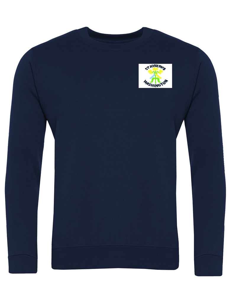 Navy , Woodbank Sweatshirt with the St Joseph's Washington RC School logo embroidered on.