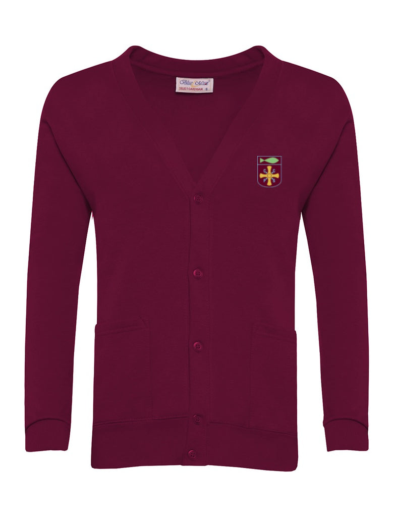 Maroon Coloured Cardigan embroidered with the school logo on the left chest.